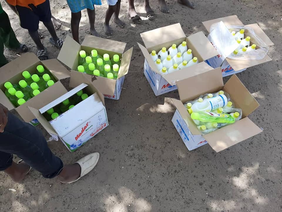 • Des kits sanitaires : savon, gel hydroalcoolique, masques et seaux pour le lavage des mains.
